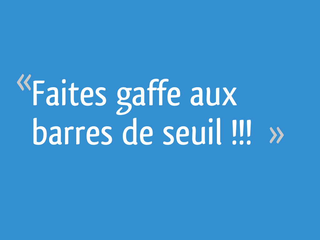 Enlever une barre de seuil. Enlever barre de seuil bonjour je cherche à enlever deux barres de seuil récalcitrantes. Il est aussi intéressant de prendre conscience que la largeur de la porte nécessite de faire attention aux types de barres à choisir. J avais un lino à changer bordé tout le long d une barre de seuil jonction lino parquet flottant. Enlever vis à frapper d une barre de seuil.